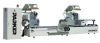 Alu-PVC Profile CNC Control Double head Saw Parameters and specifications: 1) Repeating fixed length precision: ≤0.2mm 2) Cutting angle: 5° 3) Cutting plane: ≤0.1mm 4) Cutting harshness: Ra12.5μm 5) Power supply: 380V, 50Hz (three-phase and four-wire) 6) Motor supply: 2 x 2.2kW 7) Speed: 2,800rpm 8) Saw blade dimensions: Φ500 x 4.4 x Φ30mm, Z=120mm 9) Air pressure: 0.5-0.8MPa 10) Air consumption: 200L/min 11) Cutting angle: 90°, 45°, 67.5° (22.5°) 12) Cutting length: max. 4,200mm (5,000mm), min. 400mm 13) Cutting width: max. 140mm 14) Cutting height: max. 300mm 15) Overall dimensions: 5,500 (6,300) x 1,700 x 1,800mm 16) Weight: 1,800kg (2,000kg) Equipment features: 1) Used for not only aluminum profile cutting 2) Feeding system adopts imported linear guide pair, with high accuracy and long service life 3) Adopts high helical pitch ball screw-lead motion, with high accurate driving and locating, and smooth working 4) Adopts CNC technique, and can automatically cut off various profiles 5) 22.5°, 45° and 90° cutting available 6) Imported carbide saw blade gives accurate processing and high endurance 7) Imported linear bearing motion pair ensures steady processing accuracy 8) Saw blade rotates smoothly due to high accuracy main spindle 9) Uniform speed feeding and smooth motion due to air-hydraulic damping cylinder 10) Auto-opening guard shield ensures safety operation 11) The two-way location-and-clamping feature ensures high precision and steadiness